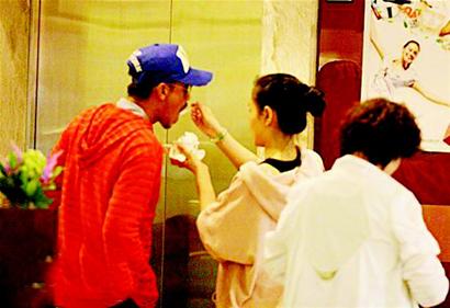 當(dāng)晚6時(shí)許,新婚夫婦王學(xué)兵、孫寧到商場(chǎng)購(gòu)置生活用品。王學(xué)兵身穿橘紅色上衣、牛仔褲,戴黑框眼鏡,孫寧一身休閑打扮,橘紅色的挎包與王學(xué)兵的上衣相呼應(yīng)。兩人買完一堆生活用品之后,王學(xué)兵又買了冰淇淋,在等候電梯時(shí),孫寧甜蜜地喂王學(xué)兵吃冰淇淋。