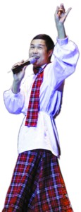 雖說是趙家班的巡演,但連舞臺上都掛著“小沈陽笑轉(zhuǎn)2009”的橫幅,場子里90%以上的觀眾更是沖著這位當(dāng)紅諧星而來,難怪演出開始的一個(gè)半小時(shí)之后,當(dāng)小沈陽穿著經(jīng)典的蘇格蘭裙裝蹦著走到舞臺中央時(shí),現(xiàn)場立即爆發(fā)出雷鳴般的掌聲,熱情的女觀眾也開始接力般一個(gè)個(gè)地往舞臺上送玫瑰花。