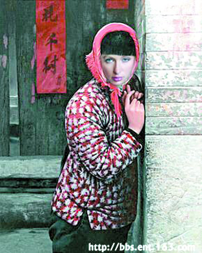 而網(wǎng)友就為她設(shè)計(jì)了很多有中國(guó)特色的服裝,其中,有一張“純樸的小!碧貏e引人注目。在這張作品里,希爾頓的頭發(fā)被“染”成了黑色,穿著紅底白色碎花小棉襖,頭上還裹著塊紅布,害羞地倚在家門(mén)口的墻上,表情還略帶幾分期待。此情此景,讓人情不自禁地聯(lián)想起鞏俐在《秋菊打官司》中的造型。但與“秋菊”相比,希爾頓顯然要少幾分倔強(qiáng)、多幾分嫵媚。 (王文)