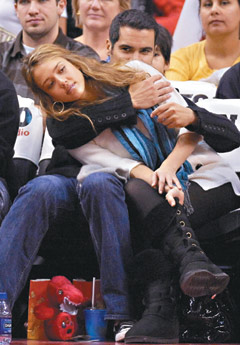 中新網(wǎng)11月20日電 好萊塢新一代性感女星潔西卡·阿爾巴(Jessica Alba)跑去多倫多看NBA籃球賽,不知是看得太累了,還是愛(ài)得太濃了,竟然趴在制片男友凱許·華倫(Cash Warren)的大腿上。