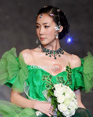 中新網(wǎng)11月27日電 據(jù)朝鮮日報(bào)報(bào)道,26日在首爾漢南洞凱悅大酒店大舞廳舉行的安德烈-金“2007聯(lián)合國兒童基金會后援之夜”特別服裝秀上,崔智友作為模特登臺走秀,展示高雅純潔的美麗。