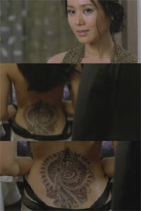 為了這個短暫的攝影畫面,孫藝珍可是一動也不動地連續(xù)3個小時趴著。據報道,光是準備文身底部就花去了4個小時,然后為了完美地展現千手觀音像,整整用了3個小時做細致的工作。