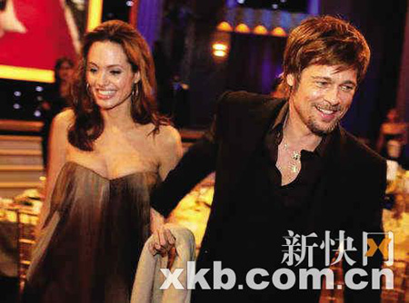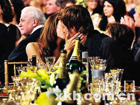 2008年1月27日,第14屆美國(guó)演員工會(huì)獎(jiǎng)(SAG)在洛杉磯舉行酒會(huì)。穿一襲抹胸禮服的安吉麗娜·朱莉與布拉德·皮特甜蜜亮相,兩人十指緊扣步入會(huì)場(chǎng),席間不時(shí)私語(yǔ),情到濃時(shí)更當(dāng)場(chǎng)幸福擁吻,濃情蜜意羨煞旁人。