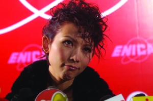 圖文:蔡少芬代言女性服飾 金衫配紅色卷發(fā)亮相