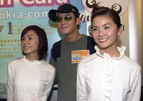 歌星陳冠希與Twins兩位成員鍾欣桐(左)、蔡卓妍(右)。 中新社資料圖 鄧慶樂 攝