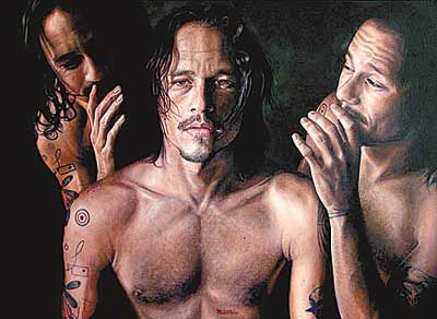 希斯•萊杰生前與好友Vincent Fantauzzo計劃打造一幅自己的肖像。據(jù)后者透露,在這幅由他完成、取名為“希斯”的肖像畫中,中間占主導地位的“希斯•萊杰”面目茫然,旁邊兩個“希斯•萊杰”正在他耳邊低語。(張明天)