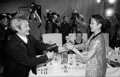 當(dāng)天,現(xiàn)場三位女主角齊齊將收到的金玫瑰送給徐克。徐克卻忽然走下舞臺,穿過前面的數(shù)十位記者,走向坐在臺下觀眾席上的施南生身邊,連同自己手上的金玫瑰,向施南生獻(xiàn)上了4朵金玫瑰,而且當(dāng)眾深情地對施南生說“金玫瑰當(dāng)然要給最好的女人,你永遠(yuǎn)是最好的女人。”這番話顯然讓施南生頗為感動和驚喜,她捧著金玫瑰,不由眼泛淚花。