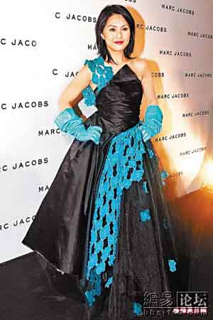 楊千嬅、梁詠琪和廖碧兒在香港出席“Marc Jacobs08年春夏時(shí)裝匯演”,早前因?yàn)榇㎝arc Jacobs晚裝而遭劣評的千嬅當(dāng)晚抵住壓力,繼續(xù)穿該品牌晚裝亮相(右),并且獲得設(shè)計(jì)師賞識,以全場最貴價(jià)的14萬元藍(lán)黑裙晚裝出場,但這條裙子之前曾被維多利亞在Marc Jacobs廣告中穿過(左),少不得又被拿來比較一番。