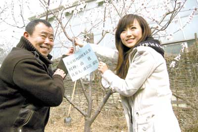 昨天,香山植物園里來了一群特殊的游客,打頭的是潘長(zhǎng)江和他的女兒潘陽,還有“大嘴”姜超、原華等演員,他們可不是來游玩的。原來由這些演員主演的農(nóng)村題材劇《清凌凌的水藍(lán)瑩瑩的天》剛剛在央視一套開播,因?yàn)樯婕碍h(huán)保主題,所以劇組決定用植樹的方式來慶祝開播。