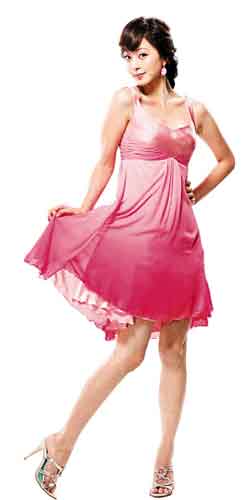 文根英拍廣告成"粉紅女郎" 穿裙裝俏皮可愛(ài)(組圖)