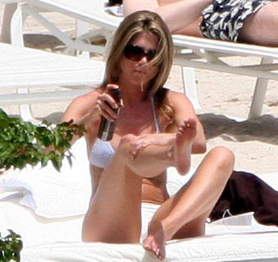 組圖:安妮斯頓孤身海灘曬日光浴 百無(wú)聊賴