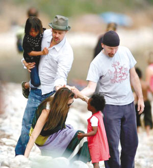 圖文:大肚朱莉海邊險(xiǎn)摔倒 皮特驚出一身冷汗