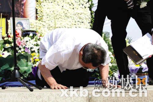 骨灰盒由陳曉旭的妹婿于寧手捧進場,曉旭的妹妹陳曉陽則手捧遺像進行公祭。儀式上,陳曉旭父親更是跪地叩頭,拜謝前來祭奠女兒的親友和各界人士。