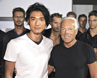 名服裝設(shè)計(jì)師阿瑪尼邀金城武(左)到米蘭欣賞新裝發(fā)表會。