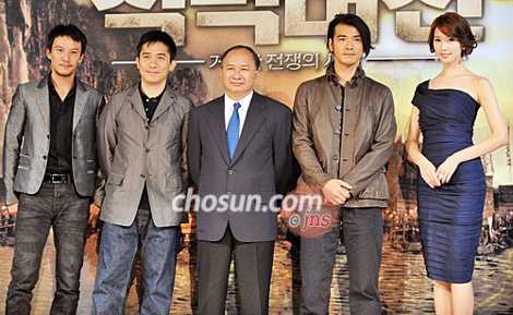 據(jù)朝鮮日報報道,昨日《赤壁大戰(zhàn):龐大的戰(zhàn)爭之開始》導(dǎo)演吳宇森(62歲)和主演梁朝偉(飾周瑜)、金城武(飾諸葛亮)、張震(飾孫權(quán))、林志玲(飾小喬)出席在首爾廣壯洞華克山莊酒店舉行的記者會,為影片在韓國首映造勢。