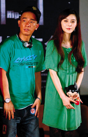 范冰冰、陳小春穿情侶裝講悄悄話(圖)