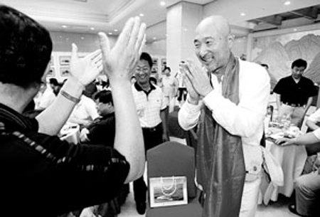 “陳老師,您來(lái)了怎么也不吱一聲。 边有人走過(guò)來(lái),親手為陳佩斯戴上一條藍(lán)色哈達(dá)。