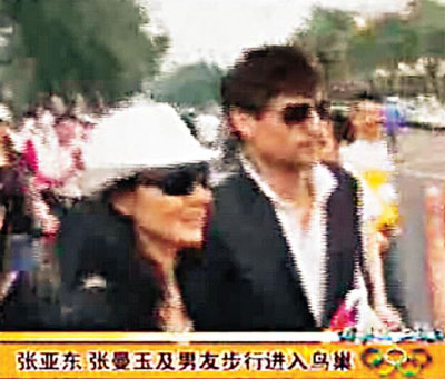 張曼玉和男友到達(dá)鳥巢,觀看奧運(yùn)開幕式。
