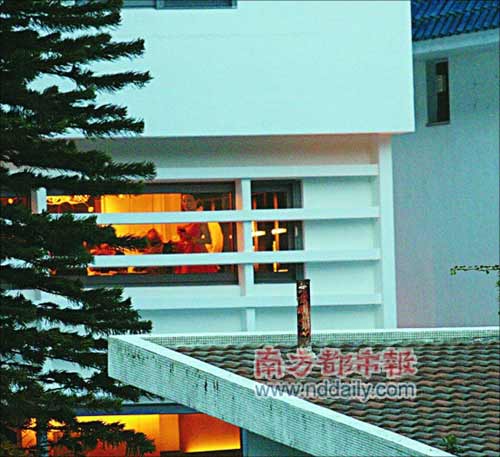 偉仔與嘉玲8月9日在家中舉行新婚派對,嘉玲將頭發(fā)盤起,穿上桃紅色大露背低胸晚裝倍感迷人。當(dāng)日看到很多賓客盛裝赴會,據(jù)悉有張學(xué)友夫婦、劉德華(華仔)及其他圈內(nèi)外好友。華仔8日晚才結(jié)束北京奧運會開幕式的表演,隨即趕回港出席派對。8月9日傍晚時分,已見身穿桃紅大露背晚裝的嘉玲在家中招呼賓客,每個人手上都拿著紅酒把酒言歡,不時在屋內(nèi)游走,大家都很享受這種自由派對的無拘無束。只是后來偉仔發(fā)現(xiàn)記者遠(yuǎn)距離拍攝屋內(nèi)情況,就走到窗前將窗簾拉上,但無礙他們的興致。他們一直在狂歡,以致守在花園門外的記者也不時聽到他們傳來的笑聲。