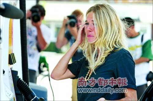 2008年8月11日,美國女星西耶娜·米勒駕駛她的凌志跑車現(xiàn)身某加油站。當(dāng)狗仔提到關(guān)于她和巴薩扎·蓋提的緋聞時(shí),西耶娜的眼淚奪眶而出,顯得非常委屈。