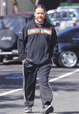 羅素·克洛前年買下澳洲職業(yè)橄欖球隊(duì)當(dāng)老板,更是變本加厲不修邊幅,身材往橫向發(fā)展。盡管他片約不斷,但多半不用秀肌肉,等到上戲時(shí),才發(fā)現(xiàn)戲服太緊。