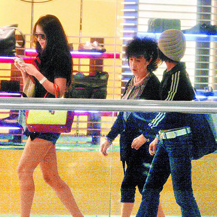 章子怡(左起)日前帶媽媽、助理到香港血拼,一路上不停察看手機(jī)短信。
