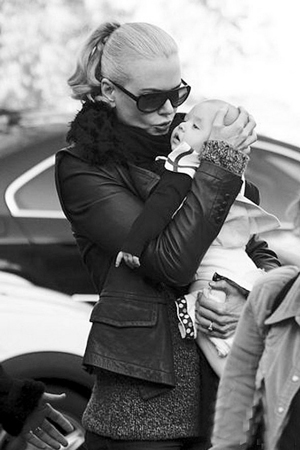 圖文:妮可抱愛女亮相 不時(shí)努嘴逗女兒