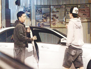 梁朝偉與劉嘉玲婚后各自忙碌,最近偉仔更為了新片《一代宗師》,天天積極苦練詠春拳。而日前晚上八時許,難得不用操練的偉仔獨自駕駛其百萬跑車,前往天后吃晚餐。不過,到達后偉仔竟無懼抄牌,匆匆把車停于路旁后,便急匆匆步入附近的蠔吧,逗留了一個多小時,才與嘉玲的女助手出來,但身旁卻未見愛妻嘉玲。偉仔隨后與助手步行前往取車時邊走邊聊,但見他毫無笑容,之后更與助手揮手道別,獨自駕車離開。