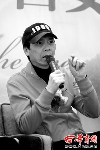 馮小剛昨日一亮相,立即被眾多攝影記者包圍,成為主角。他伸出雙手“下壓”:“攝影記者們都退退,找地方坐下,我們好和后面的文字記者說話。謝謝。”一分鐘后他才維持好秩序,直到最后一個站著拍照的人坐下,方才接受采訪。