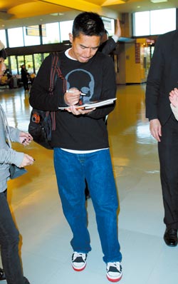 中新網(wǎng)1月16日電 據(jù)臺灣《中國時報(bào)》報(bào)道,梁朝偉結(jié)束《赤壁:決戰(zhàn)天下》臺灣宣傳行程,15日與金城武分別搭機(jī)離臺。梁朝偉在機(jī)場親切為影迷簽名。