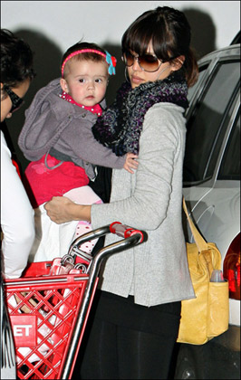 要是說模范媽媽那一定非杰西卡·阿爾芭莫屬了,每每出現(xiàn),都把愛女打扮的或者像小精靈或者像小娃娃或者星范十足或者可愛十分,這次我們的小杰西卡被媽媽打扮成了小俏妞,紅色小發(fā)卡一帶,真太可愛了,太好玩了。