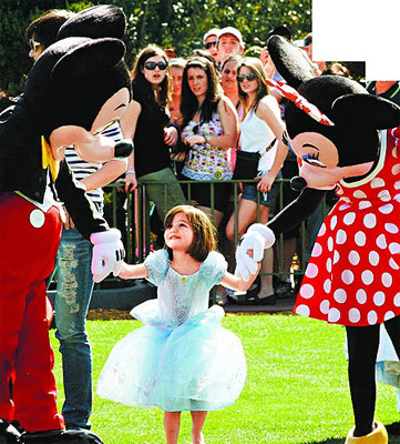 中新網(wǎng)2月18日電 湯姆·克魯斯(TomCruise)結(jié)束新片宣傳,隨即與家人共享天倫。他和愛妻凱蒂·赫爾姆斯上周末情人節(jié)帶女兒蘇瑞到佛羅里達(dá)州的迪斯尼樂園玩。蘇瑞扮成灰姑娘,阿湯哥拿著相機追著她拍,比狗仔還敬業(yè)。