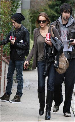 情人節(jié)當(dāng)天和同性女友 Samantha Ronson大吵架的林賽·羅韓好像已經(jīng)緩和了,兩個(gè)人被拍到在紐約街頭。當(dāng)天的林賽實(shí)在是范的不一般,咖啡色的開身毛衣,搭配里面的半透明的咖啡衣服,內(nèi)衣若隱若現(xiàn)性感非常,下身則是緊身的深藍(lán)色牛仔褲黑色的高跟靴子,襯得雙腿修長(zhǎng)。最重要的是手里的黑色機(jī)車服,這個(gè)道具已經(jīng)出現(xiàn)在很多明星的手里了,看來想讓機(jī)車服不熱都不成了。