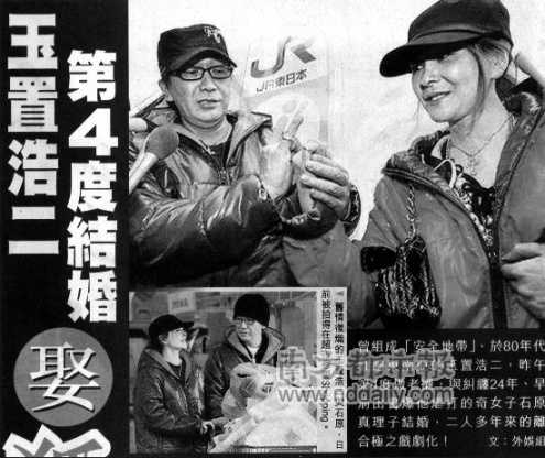 曾組成樂隊“安全地帶”,于上世紀80年代紅遍東南亞的玉置浩二,前天第四度做老襯,與糾纏24年、早前更曾出書爆他虐打自己的奇女子石原真理子結(jié)婚,二人多年來的離合極為戲劇化!