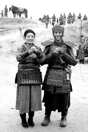 昨日,記者來(lái)到河北易縣《花木蘭》的拍攝現(xiàn)場(chǎng),目睹了趙薇、陳坤的兩場(chǎng)武戲。拍攝雖然辛苦,趙薇卻已經(jīng)學(xué)會(huì)了單手騎馬。為了讓花木蘭扮相更像男人,劇組還專(zhuān)門(mén)為她買(mǎi)來(lái)了束胸腰帶,但她并不會(huì)故意學(xué)男聲,而是要顯得自然。拍攝砍殺敵人的鏡頭時(shí),趙薇被濺得滿臉是血。趙薇告訴記者,“這些血都是用川貝枇杷膏制作的,看著很?chē)樔,其?shí)還可以舔,甜甜的!