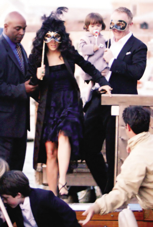 長(zhǎng)達(dá)兩天的婚禮處處經(jīng)過(guò)精心布置。上周五,主人家按照傳統(tǒng),在威尼斯古跡海關(guān)大樓舉行了一場(chǎng)晚宴彩排以及假面舞會(huì)。海耶克、皮諾特帶著他們19個(gè)月大的女兒瓦倫蒂娜以及皮諾特與前妻的兒子,乘坐“水上巴士”抵達(dá)會(huì)場(chǎng)。無(wú)論是婚禮主角海耶克和皮諾特,還是塞隆等來(lái)賓均手持面具遮臉。