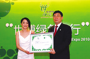繼去年擔(dān)任“聯(lián)合國中國區(qū)首位親善大使”后,昨天周迅再度榮任上海世博會(huì)“綠色出行大使”,成為首位獲此榮譽(yù)的藝人。開始以雙重“大使”的身份,倡導(dǎo)低碳生活,為綠色出行獻(xiàn)上自己的一份力量。