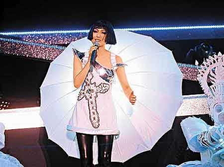 據(jù)香港媒體報道,鄭秀文前晚在上?扇菁{三萬觀眾的虹口體育場舉行一場演唱會,是夜全場爆滿,雖然鄭秀文以唱廣東歌為主,只唱了幾首普通話歌,但觀眾反應仍很熱烈。不過在演唱雜錦快歌時,她的耳機突然失靈,在13分鐘的又唱又跳過程中,原來她完全聽不到自己的聲音,唱罷她在臺上說:“我很不開心,耳機壞掉,我完全聽不到自己在唱什么,所以我要重唱這部份!彼挥衷俪偬耆珱]有失準。