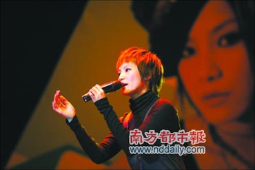 10月20日下午何韻詩(shī)一瘸一拐地來(lái)到廣州。原來(lái),19日,何韻詩(shī)因?yàn)樽呗否R虎,不小心扭到了腳,又不肯看醫(yī)生,所以第二天就腫痛難忍了。帶傷的何韻詩(shī)當(dāng)晚還在廣州軍區(qū)體育館舉行了小型的演唱會(huì)。因?yàn)闈M座的粉絲們熱情高漲,尖叫如潮,阿詩(shī)竟然忘卻傷痛,帶著傷腳在舞臺(tái)上勁歌熱舞起來(lái)。