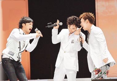 中新網(wǎng)12月3日電 年底樂壇頒獎禮逼近,宿敵陳奕迅(Eason)與古巨基前晚在音樂會上演連場好戲!把富痹谂_上先禮后兵,但臺下即舌劍唇槍,充滿火藥味。