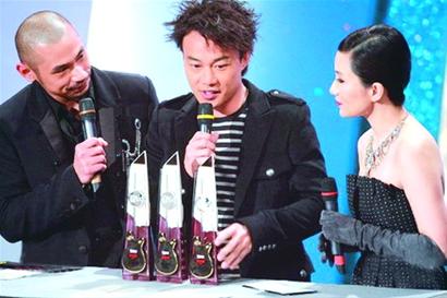 頒獎典禮開始不久,香港天王陳奕迅就憑借國語單曲《淘汰》連得最佳編曲、最佳監(jiān)制、金曲第3首三個獎項頒獎禮,掀起首個高潮;之后他又奪得最佳男歌手獎,他的《富士山下》奪得全球觀眾最受歡迎粵語歌曲獎,連奪5獎,成為當晚最大贏家。