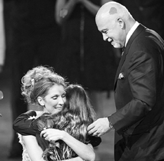 北京時間昨日晚,女星席琳·迪翁在拉斯維加斯舉行終結演唱會。在5年的時間里,席琳·迪翁連續(xù)進行了713場表演,而且場場爆滿,人氣可見一斑。一身長裙亮相的席琳·迪翁優(yōu)雅動人,宛若傳說中的女神。在唱完最后一首歌的時候,現(xiàn)場的觀眾報以經(jīng)久不斷的掌聲。最讓大家驚喜的是,此次表演,席琳·迪翁的丈夫和愛子也登臺,他們送上了漂亮的玫瑰,席琳·迪翁與丈夫在臺上激情纏吻,火爆全場。 (聞逸)