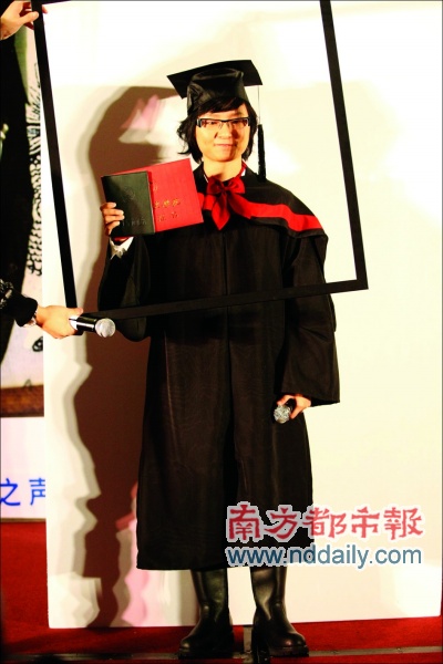 星海音樂學院2003屆最著名的學生周筆暢同學,今年終于畢業(yè)了。昨日,在她的新專輯首發(fā)廣州站活動上,就穿插了一場別開生面的畢業(yè)典禮。穿著學士服的周筆暢,隆重地從老師手中接過了畢業(yè)證書,現(xiàn)場更架起了相框,拍起了畢業(yè)照。而當日同期發(fā)行的兩張專輯《NOW》和《WOW》,也就成了周筆暢最有說服力的一份畢業(yè)作品。