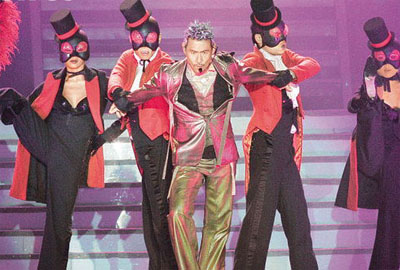 據(jù)香港太陽報(bào)報(bào)道,橫跨一年的張學(xué)友世界巡回演唱會,經(jīng)美國、加拿大、澳門、日本、臺灣、新加坡、印尼、澳洲與馬來西亞后,昨晚回歸香港舉行“學(xué)友光年世界巡回演唱會07香港GRAND FINALE”,為末站閉幕篇揭開序幕,這晚剛巧還是巡回演出第一百場。剛出院的學(xué)友,在薄薄的演出服內(nèi)穿上內(nèi)衣保暖,照樣賣力地載歌載舞,絕不欺場,而臺下的Fans也紛紛穿起雨衣,冒冷坐在濕凳上捧場。