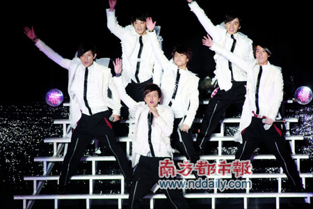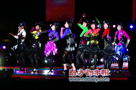8位黑澀會(huì)美眉落力表演,為演唱會(huì)增添了不少亮麗的顏色。