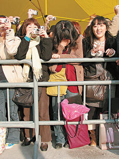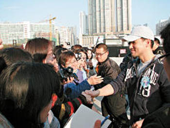 中新網(wǎng)2月4日電 張學(xué)友昨日4時45分在西九龍中天地為巡回演唱會的最后一場演出拜神,一身運(yùn)動衣帽現(xiàn)身的學(xué)友一如過往,與在場等候的過百名中、韓、港、臺粉絲逐一握手和收禮物,并且不時露出笑容和舉起拇指,只是明顯有兩聲咳嗽,而現(xiàn)場更有粉絲一見學(xué)友即感動落淚。學(xué)友雖然未有接受訪問,但拜神期間相當(dāng)誠心,更準(zhǔn)備了雞、鵝、生果、以及4只燒豬。