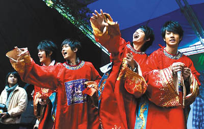 中新網(wǎng)2月4日電 據(jù)臺(tái)灣聯(lián)合報(bào)報(bào)道,臺(tái)灣偶像團(tuán)體飛輪海發(fā)片銷售創(chuàng)佳績(jī),4人昨天變身成財(cái)神爺,發(fā)送紅包給歌迷,近千名粉絲爭(zhēng)搶紅包,把飛輪海全身摸透透。歌迷太過(guò)熱情,辰亦儒的手臂也被抓到見紅,他在簽名會(huì)途中突然感到頭暈?zāi)垦,臉色瞬間慘白,活動(dòng)一度中斷。
