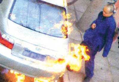 2007年9月7日,“竇唯縱火案”在北京宣武法院開庭審理。在被告自辯環(huán)節(jié),一直惜話如金始終用點頭和同意來表達自己看法的竇唯,終于在法庭上開口為自己辯護,竇唯稱自己不是故意的損害他人財物,點汽油燒車的行為完全因為憑空捏造的假新聞讓自己失控。當庭,竇唯的自辯非常簡單,竇唯平靜的說道,“我不是故意損壞他人財物,的確是因為一條憑空捏造的假新聞,導致了我失控的行為,我認為虛假的新聞報道禍國殃民! 2006年5月音樂人竇唯因對報社的報道不滿,到該報交涉未果,一怒之下將報社內(nèi)的電視、電腦等摔砸在地,并將報社門前的一輛轎車點燃,結果因涉嫌故意毀壞財物罪被公訴。 中新社發(fā) 吳芒子 攝