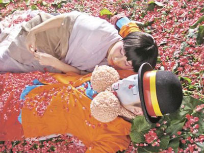 據(jù)香港明報(bào)報(bào)道,這是何超儀新歌《償還》MV的照片,陳冠希(Edison)客串演出扮布偶,MV于艷照風(fēng)波爆發(fā)前,去年12月拍攝。一度因艷照事件連累不能播出,在超儀極力爭取下才重見天日。