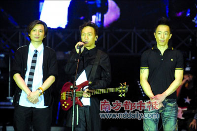 早前家強(qiáng)和貫中一直有不和傳聞,雖然兩人之前都跟傳媒說已冰釋前嫌,但并不曾同臺。前晚演唱會開始后,臺下不斷有觀眾大叫“阿Paul阿Paul”,在葉世榮登臺后,歌迷更是不斷大叫,終于,黃貫中出現(xiàn)。
